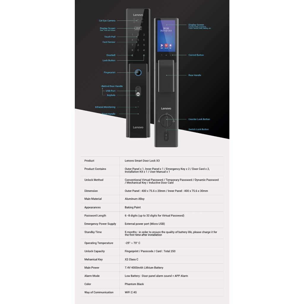 [FREE INSTALLATION] LENOVO X3 DOOR VIEWER DIGITAL DOOR LOCK