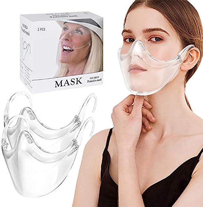 【2 PACK】Clarity Face_Shield for Adult, Clarity Face_Masks Reusable Clear Face_Mask Transparent, All Clear Face Bandanas Breathable Comfortable, Visible Expression for Women Men