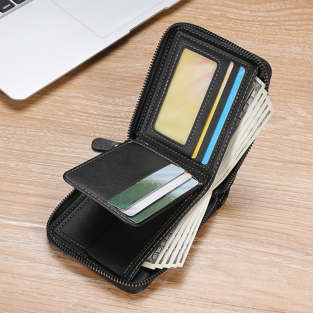 Men New Style Leather Zipper Short Wallet Multifunctional Coin Purse Multi-card ID Bag Card Holder