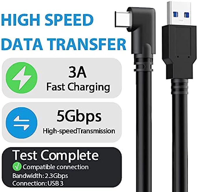 • LINK CABLE: 16-foot long charger, L-shaped design, not easy to fall off, allowing you to move freely without restriction while playing games. 90° right angle, preventing disconnection, more stable, giving you an immersive VR gaming experience. usb 3 to usb c to pc, up to 3A to charge while in use, saving charging time.