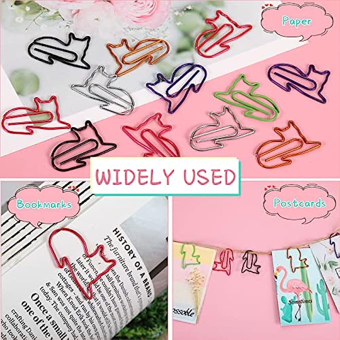 • Cat Shaped Paper Clips: our paper clips adopt cat shape design in 6 vibrant colors, they look like curling up on the ground, funny and interesting, they can pin your documents, notes, bookmarks, receipts and more, let your small items organized
