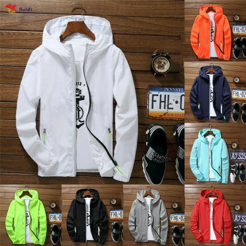 5 colors Oversize Men Waterproof Wind Breaker Quick Drying Sport Outwear with Zipper Hoodie Jacket (Sun Protection Clothing)