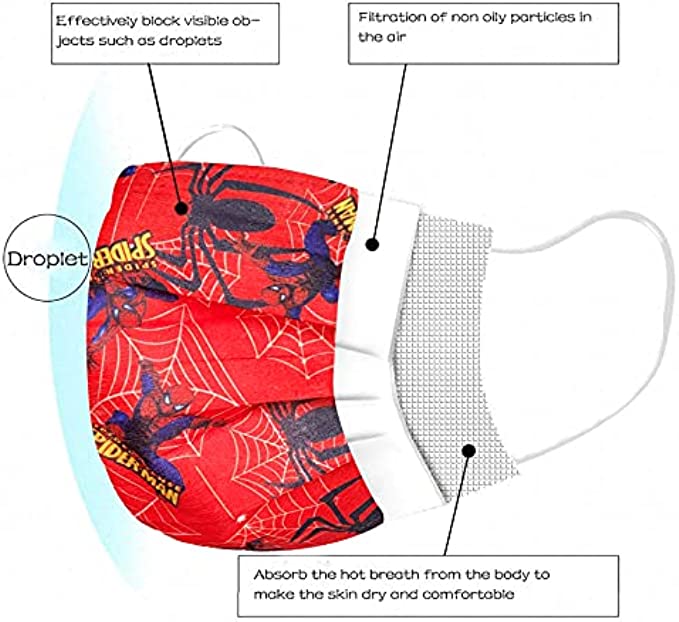 • Ideal Kids Wear: The kids face masks is suitable for school, park, playground, outdoors, cycling, home decorating, daily use etc.The package including 50pcs Printed cute cartoon pattern face masks. Kids disposable masks with 5 different printed cute cartoon patterns.Wearing a mask doesn't have to be boring! Add some energy and fun by wearing a cute and playful design.