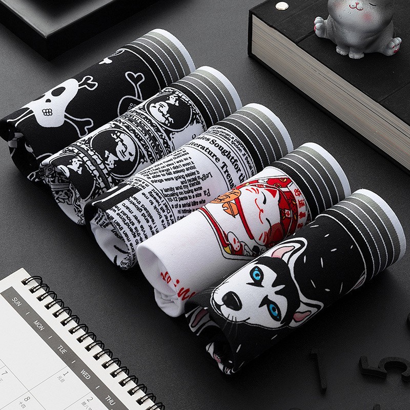 5Pcs/Set Seluar Dalam Lelaki Boxer Men Underwear Men Spender Lelaki Panties Cartoon PantiesGraffiti Plus Size Ice Silk