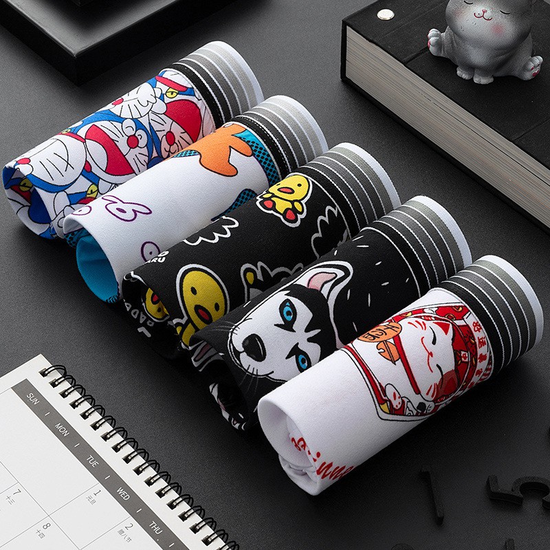 5Pcs/Set Seluar Dalam Lelaki Boxer Men Underwear Men Spender Lelaki Panties Cartoon PantiesGraffiti Plus Size Ice Silk