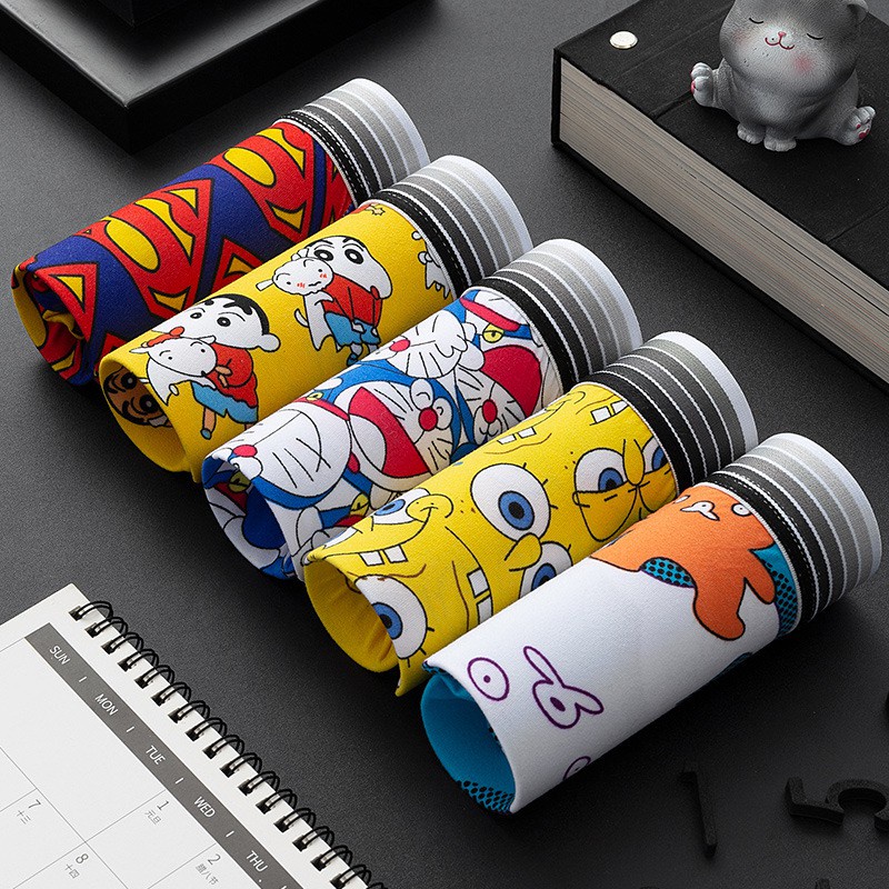 5Pcs/Set Seluar Dalam Lelaki Boxer Men Underwear Men Spender Lelaki Panties Cartoon PantiesGraffiti Plus Size Ice Silk