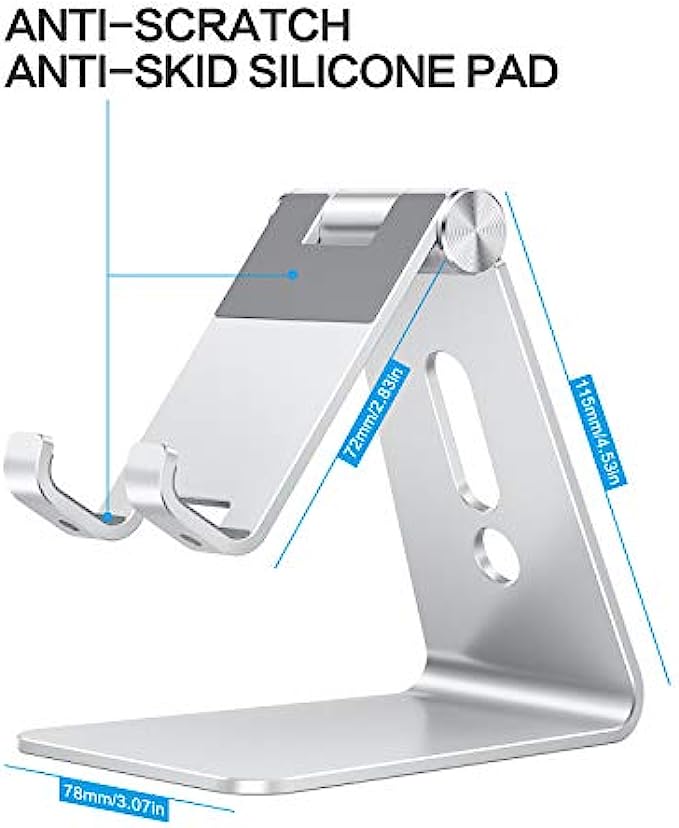 Adjustable Cell Phone Stand, OMOTON C2 Aluminum Desktop Phone Dock Holder Compatible with iPhone 11 Pro, SE, XR, 8 Plus 7 6, Samsung Galaxy, Google Pixel and More, Silver