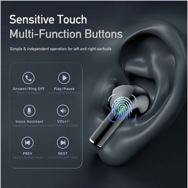 TWS Wireless Bluetooth 5.2 Noise Reduction Headphones Sport Headset HiFi Stereo Sound Gaming Earphones
