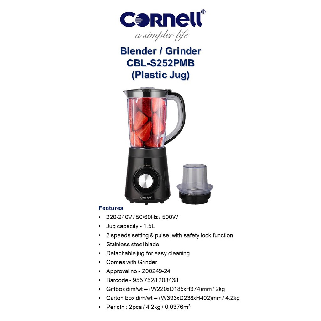 https://shopv4.88demo.cn/product/Cornell-1.5L-Jug-Blender-with-Grinder-High-Speed-Mixer-in-500-Watt-CBLS252PMB