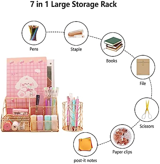 • ♥Versatile Use:One fit all! Your file, letter, pencil, scissor, pen, stapler can all be stored in our mesh desk organizer. Moreover, besides being a stationery holder, the organizer could also become your cosmetic holder. For example, you can put your eyebrow pencil, eyeliner, makeup brushers in the organizer.