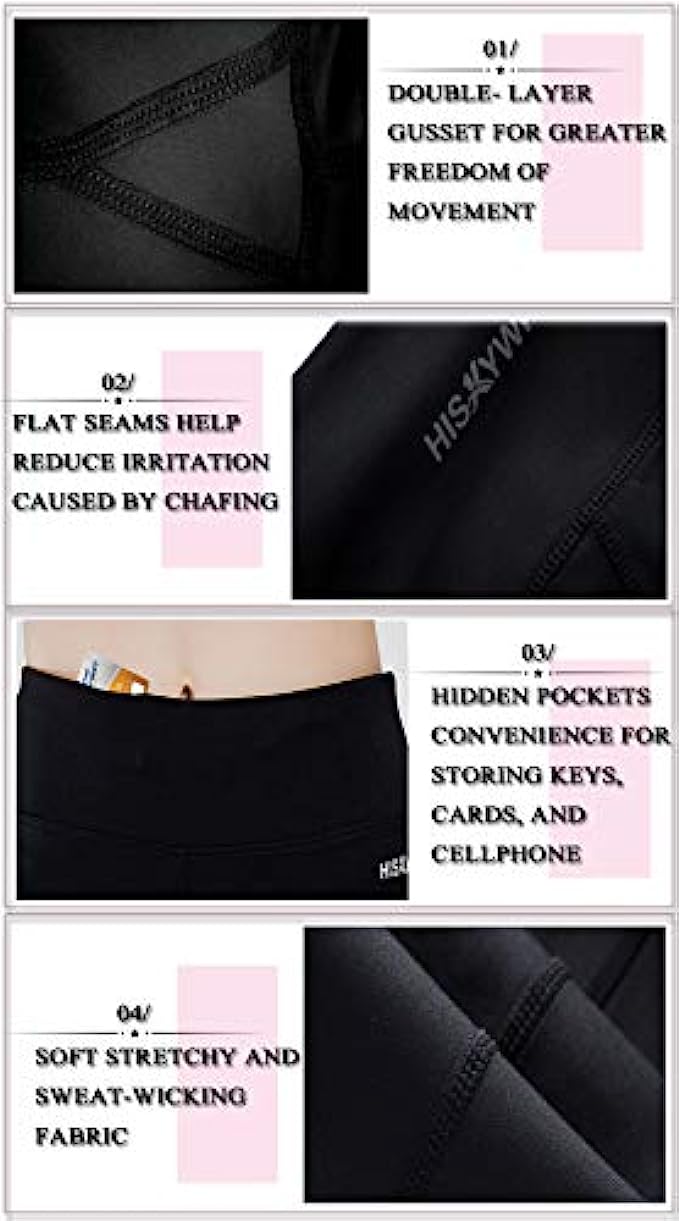 • √ COMFY DESIGN - Non see-through and gusseted crotch supports design for greater freedom of movement. It is a good choice for any type of exercise or fitness-related activities. Combining fashion, function and performance.