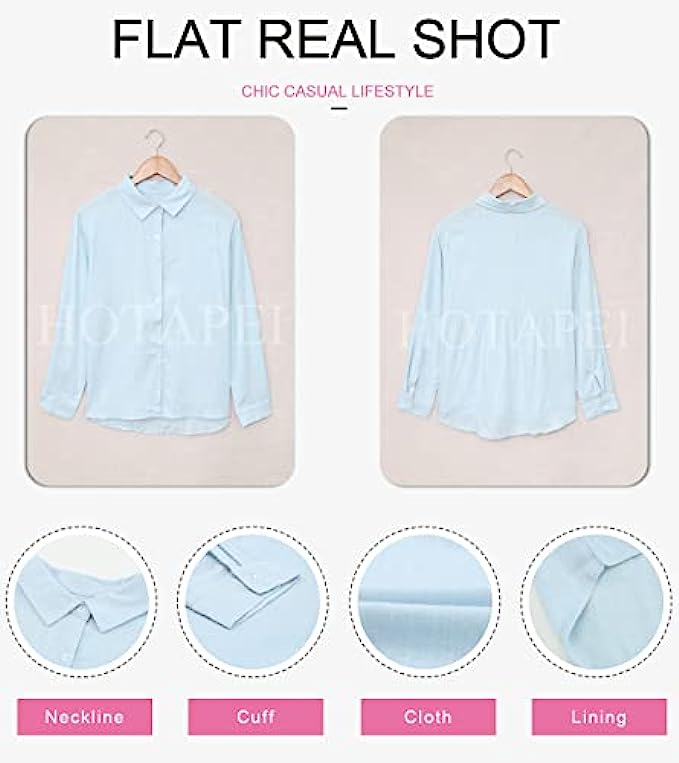 HOTAPEI Blouses for Women Casual V Neck Solid Color Womens Long Sleeve Button Down Tops Chiffon Shirts
