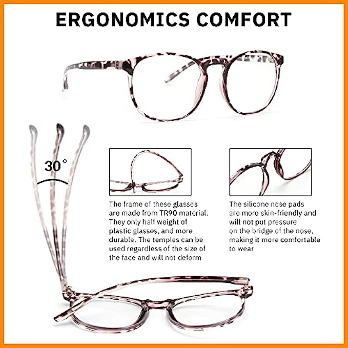 • COMPUTER BLUE LIGHT GLASSES - Blue Light Filter Glasses: Bluelight blocker, anti 95-99% of harmful blue ray and discomfort from long periods of web surfing, TV, phone, tablet, computer screen, vedio, reading and working under fluorescent lights with UV400 reduction, reduce headache, fatigue & eye strain, help you sleep better