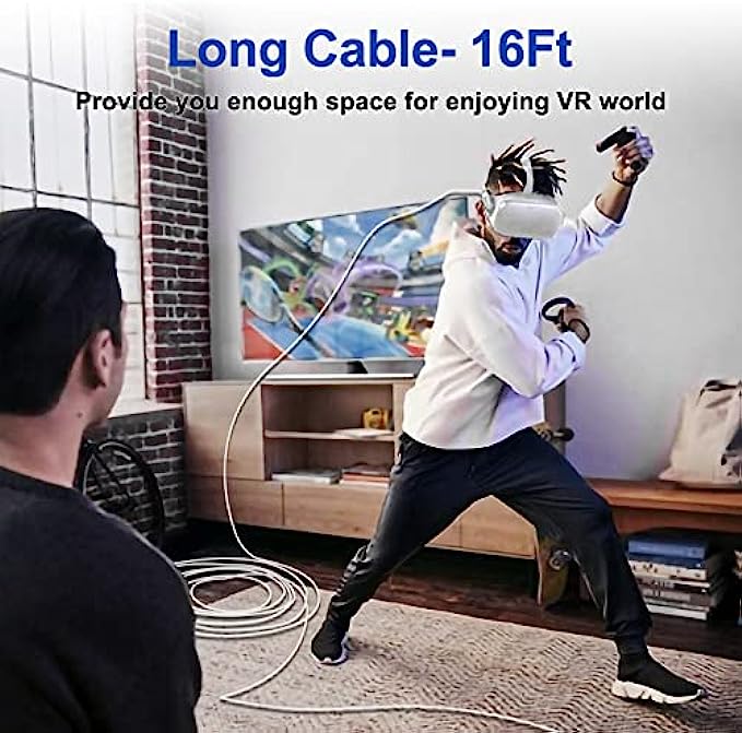 • 【Cord for PC to Connect Meta/Oculus Quest 】BSTKEECL high quality long VR cables design length up to 16FT(5m),which making you connect the headset and play computer games easily ,and having an immersive gaming experience .Thus you must not be worry about the dragging the limited cable.