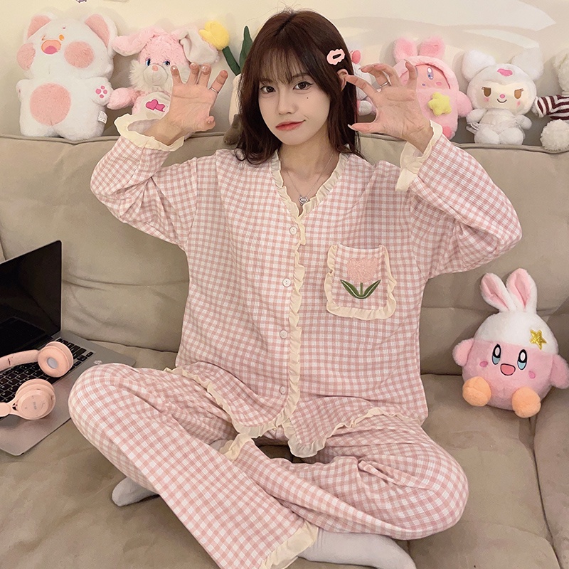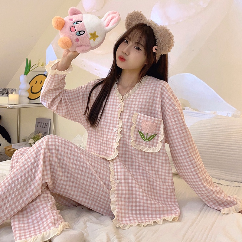 https://shopv4.88demo.cn/product/M-5XL-Plus-size-Sleepwear-Woman-Cotton-Pyjamas-Women-Long-sleeve-Pajamas-Set-Japanese-Loose-Grid-Cute-Loungewear