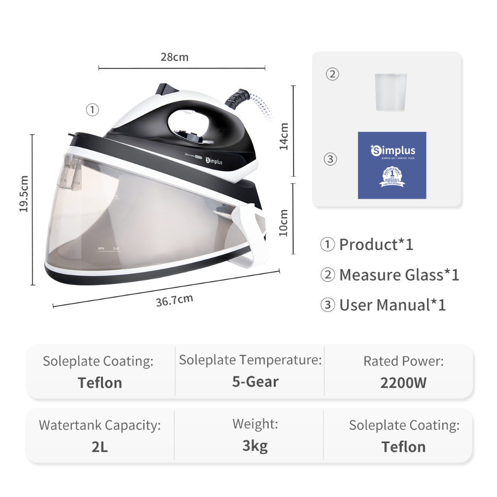 Simplus Steam Generator Ultimate G9000 Iron Garment Steamer Smooth Soleplate Strong Output 5 Mode Ironing