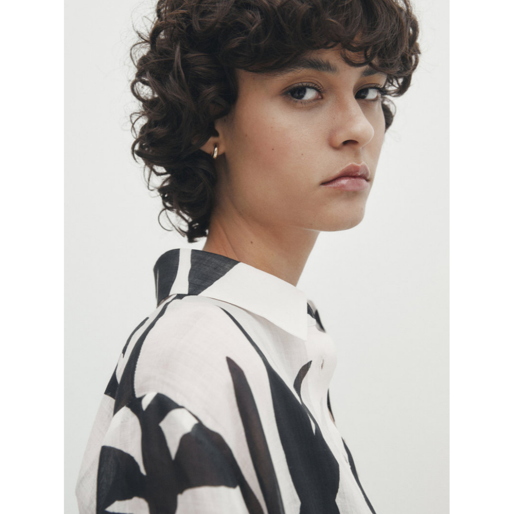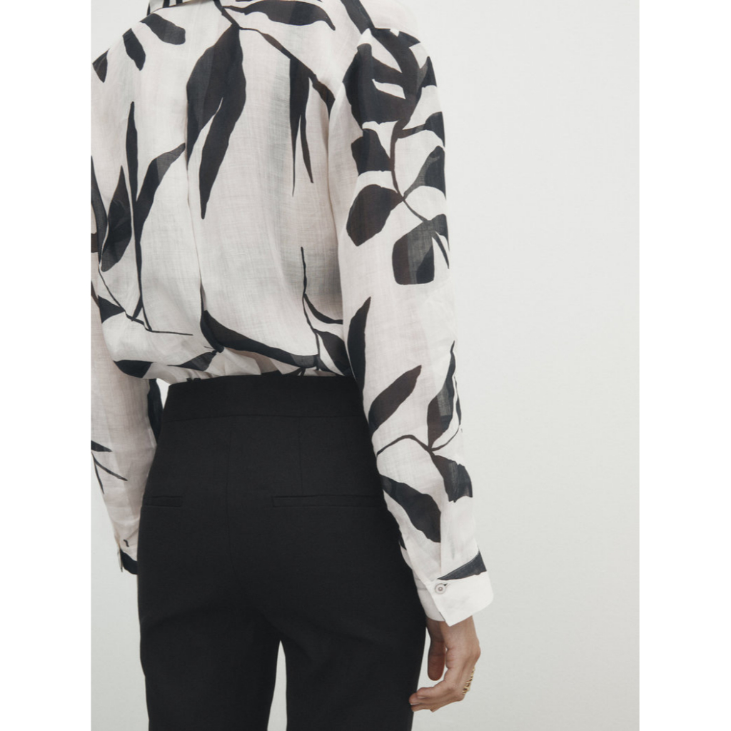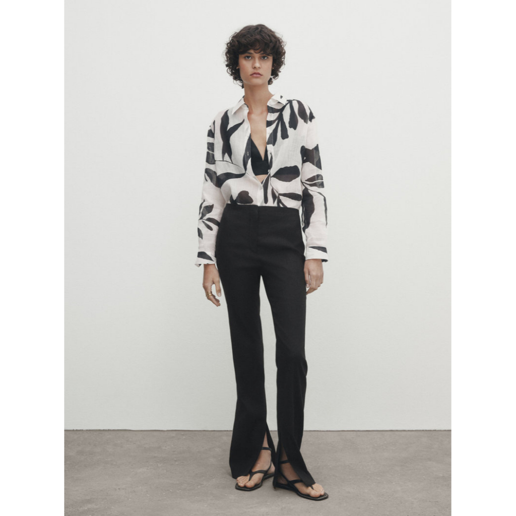 ZARA casual style comfortable pure ramie flower printing long sleeve shirt 05122818250