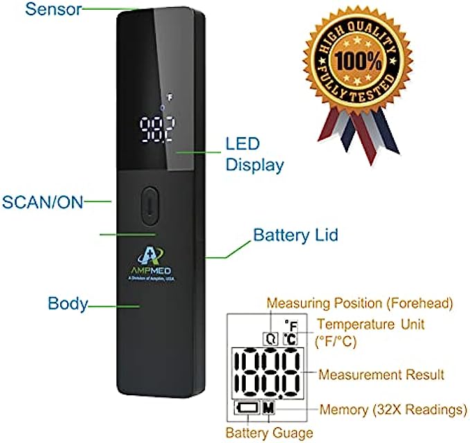 • GREAT VALUE: Features on this touchless thermometer include memory storage capacity for previous 32 readings; Celsius or Fahrenheit settings; Able to be read at night; auto-off; energy saving capabilities