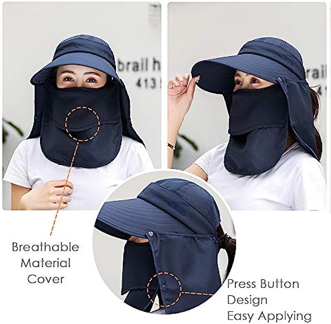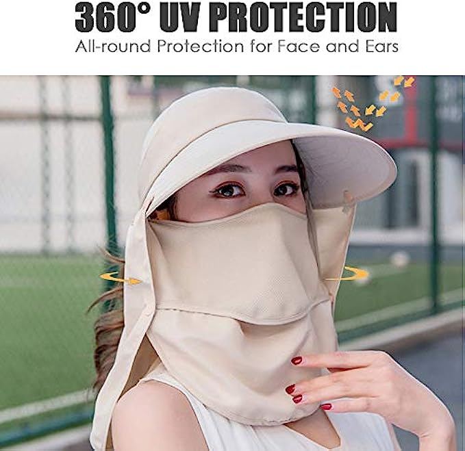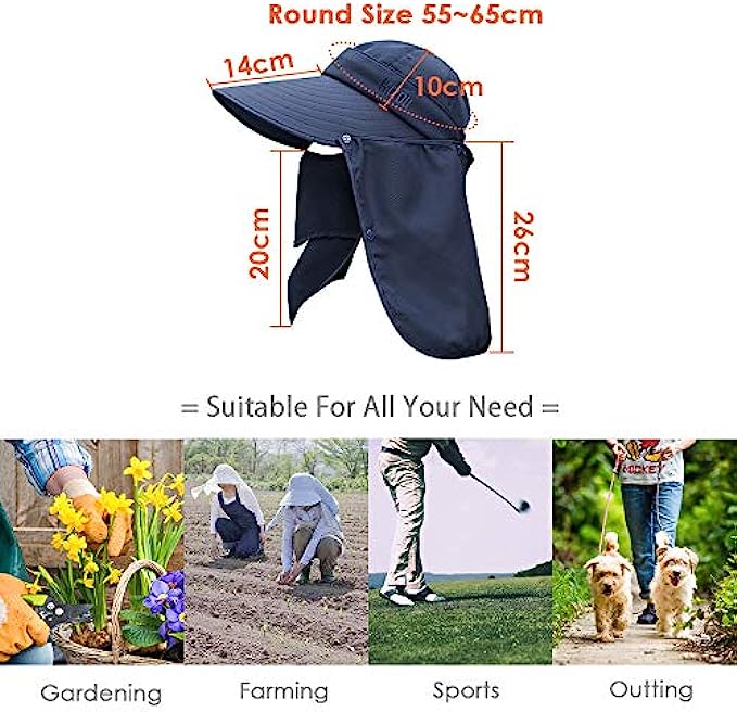 • ⊙360° PROTECTION: Comes with face and neck flap, full protection from the blazing sun. Extra wide brim provides wider shade but won’t block viewing.