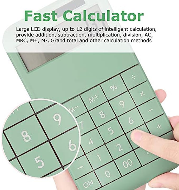 EooCoo Basic Standard Calculator 12 Digit Desktop Calculator with Large LCD Display for Office, School, Home & Business Use, Modern Design - Green