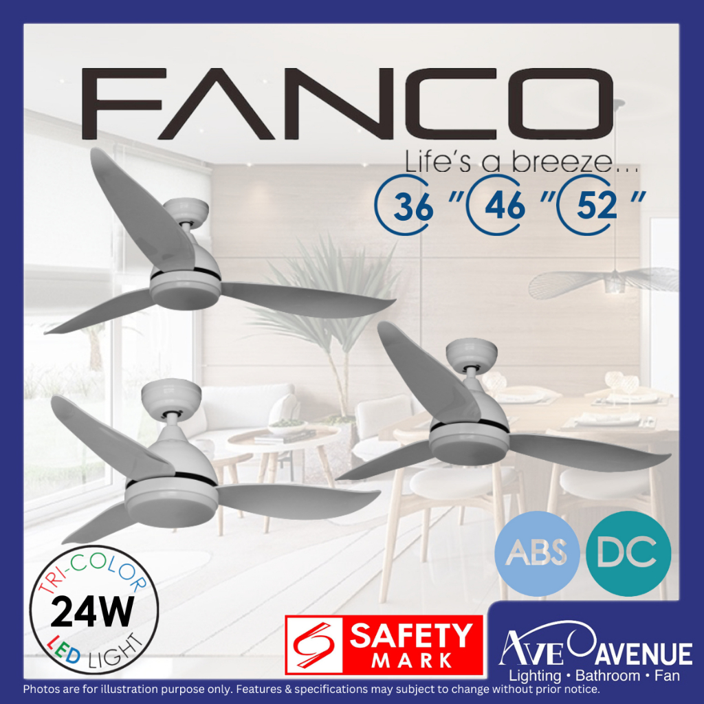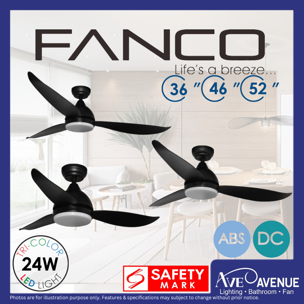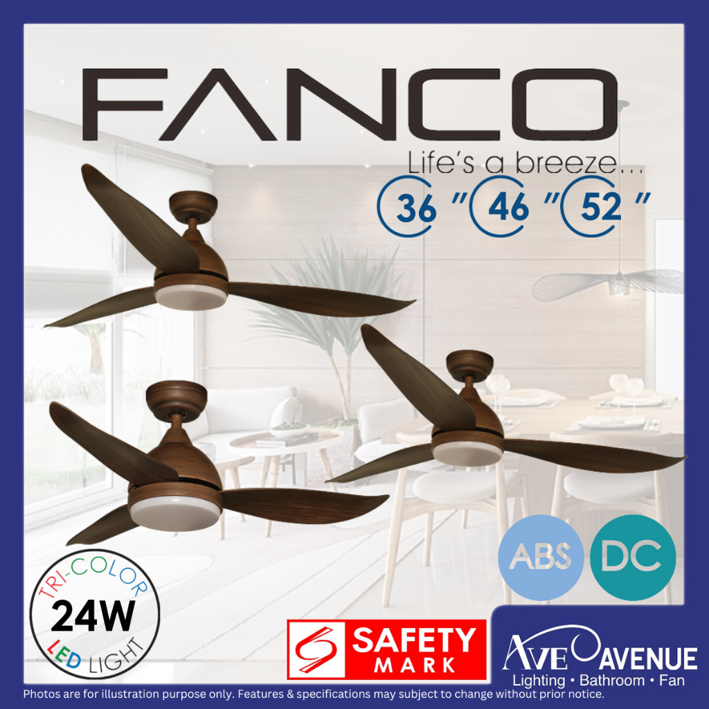 FANCO B-STAR DC Motor Ceiling Fan with 3 Tone LED Light Kit and Remote Control