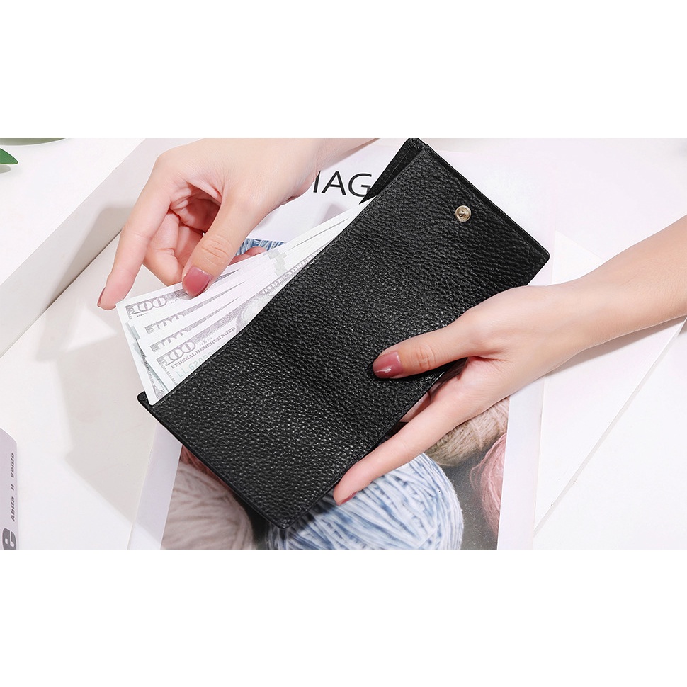GENODERN RFID Blocking Women's Wallet Genuine Leather Lady Purses Short Japanese-Style Multiple Card Slots Coin Purse Tri-Fold Wallet