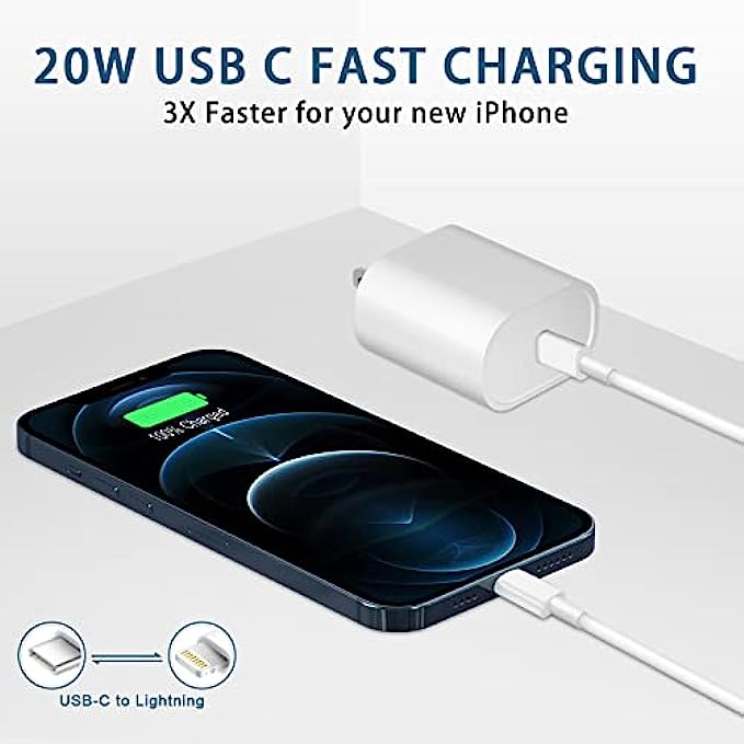 【Universal Compatibility】 The 20W PD phone chargers for iphone can fast charge iPhone 12/12 pro/12 pro max/12 mini/11/11 Pro/11 Pro Max/XR/XS Max/XS/X/8 Plus/8 , iPad Pro, AirPods Pro, and charge iPhone 7/7 Plus/6s/6s Plus/6/6 Plus/SE/5s/5/5c at standard speed.