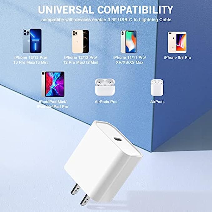 • 【Universal Compatibility】This new upgraded iPhone 12 Charger offers fast charging for iPhone 13 Pro Max/13 Pro/13/13 Mini/12 Pro/12/12 Mini/11/11 Pro/11 Pro Max/XS Max/XS/X/XR/8 Plus/8 , iPad Pro/ iPad Air/ iPad, AirPods Pro. Standard Charging Speed for iPhone 7/7 Plus/6s/6s Plus/6/6 Plus/SE/5s/5/5c.