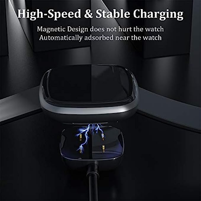 • Our Versa 3/Sense smart watch charger is reliable on advanced safety. Built with over-current, over-voltage, short-circuit and over-temperature protection. Using high quality technology and material to offer you safe charging protection and experience