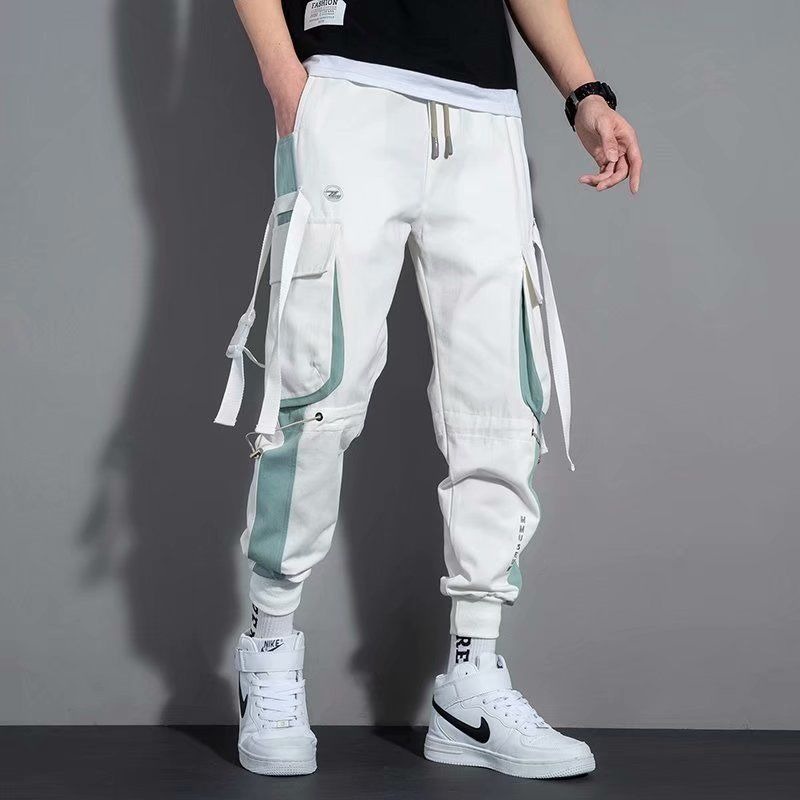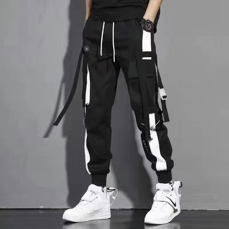 Men's Harem Streetwear Jogger Ribbons Trousers Hip Hop Cargo Pants