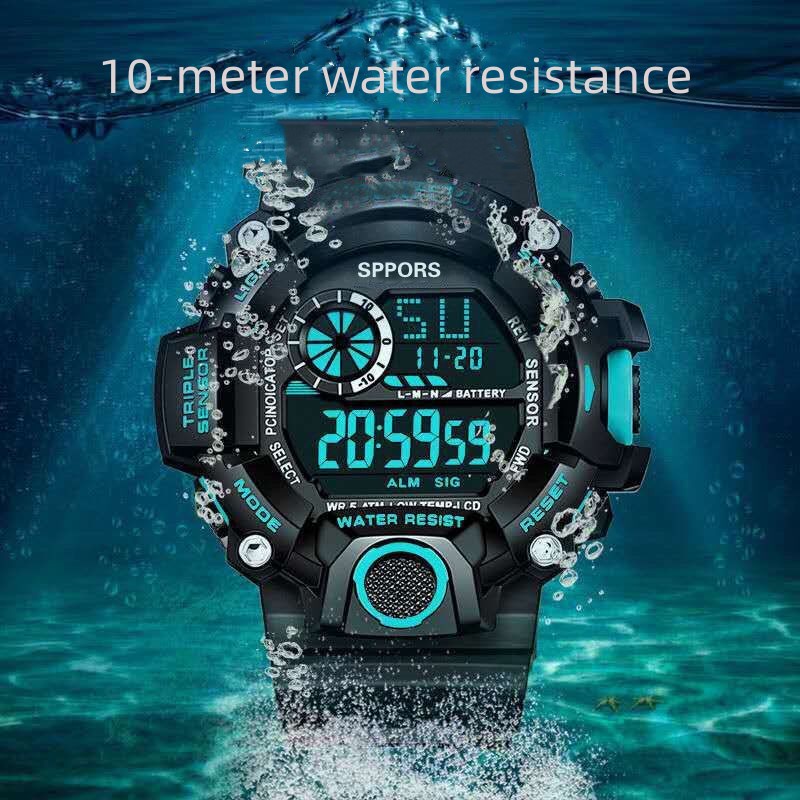 Men Watch Men's Watch Student Large Dial Silicone Sports Multi-Function Cold Light Waterproof Electronic Watch