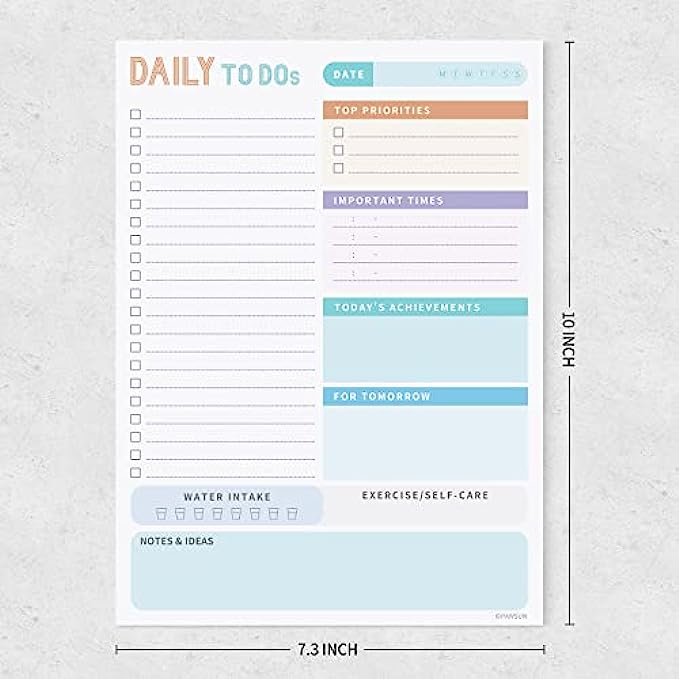 Undated Daily Planner - 52 high quality tear off sheets, it will help you organize your day. Each sheet measures 7.3 x 10 inches.