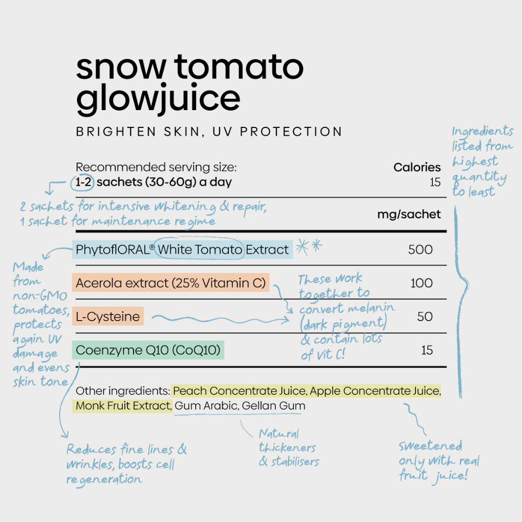 Purest Co Snow Tomato Glowjuice 1000mg White Tomato Extract (Skin Whitening)