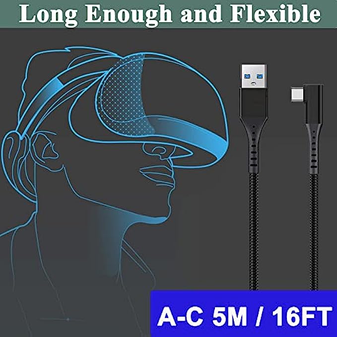 Quest Link Cable 16FT Compatible with Oculus/Meta Quest 2,VR Cable Compatible for Oculus/Meta Quest 2/1 Headset,USB 3.0 A to C,High Speed Data Transfer & Fast Charging,Durable Nylon Braided.