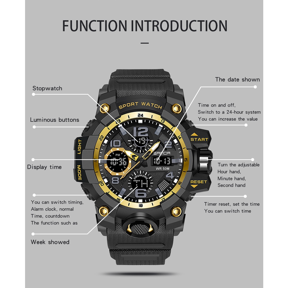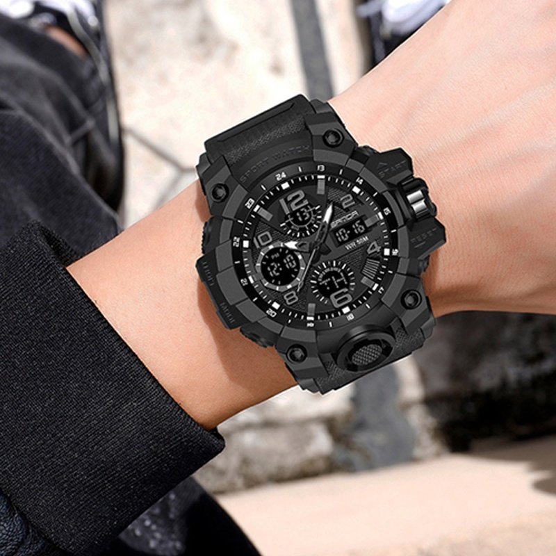 SANDA Sports Military Men's Watches Waterproof Dual Display Quartz Wristwatch for Male Clock Stopwatch