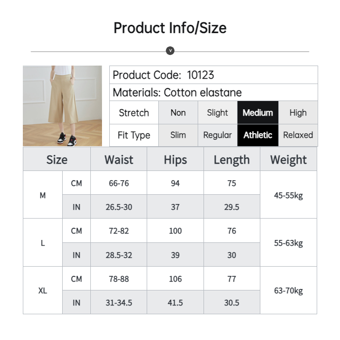 Silverworld 10123 Ladies wide leg pants High waist women casual pants culottes 3/4 length