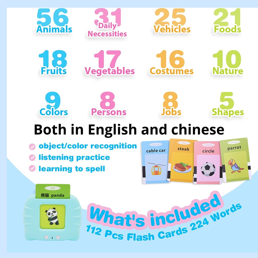 Talking Flash Cards Learning Toys for Age 2 -6| Baby | Montessori educational | LCD Writing Board | Birthday Gift