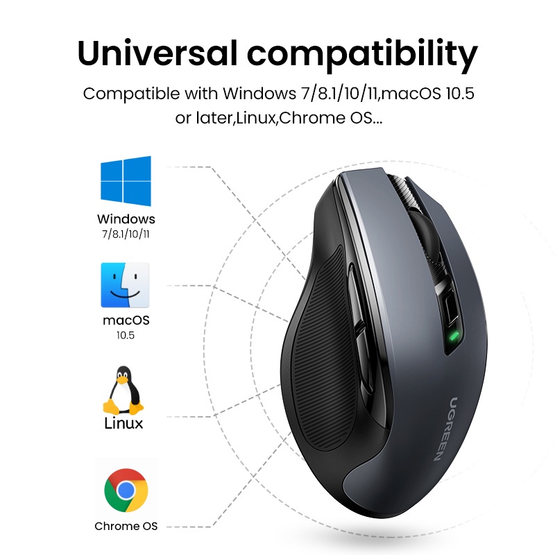 UGREEN Wireless Mouse 2.4G with USB Mini Receiver DPI Setting 4000DPI with 6 Silent Buttons 5 Level Ambidextrous for PC/Mac/Linux