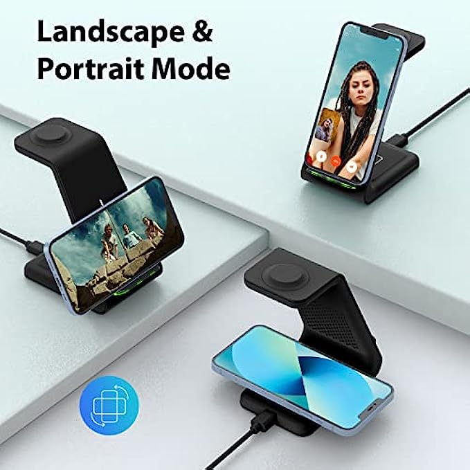 • "U"-PLATE DESIGN 3 IN 1 WIRELESS CHARGER: Only 0.47 inch thickness size with “U”-plate design and 4.8 oz weight, you can put it to the pocket. Also GEEKERA wireless charger dock can charge iPhone 13/13 Pro/13 Pro Max/12/12 Pro/12 Pro Max/11/11 Pro/11 Pro Max/8/8 plus/XS MAX/XR/X/XS/SE or Samsung phone, Apple watch 7/6/SE/5/4/3/2 and AirPods 3 pro 2 or Galaxy earbuds simultaneously(Note: Not suitable for iPhone 13 Mini/12 Mini/Airpod gen 1). Different from other wireless charging dock. Wireless charging dock haven’t the issue of” toggling between charging/not charging non stop”.