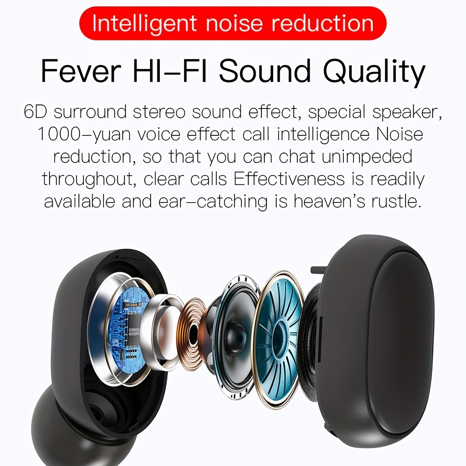 TWS Wireless Bluetooth 5.2 Noise Reduction Headphones Sport Headset HiFi Stereo Sound Gaming Earphones
